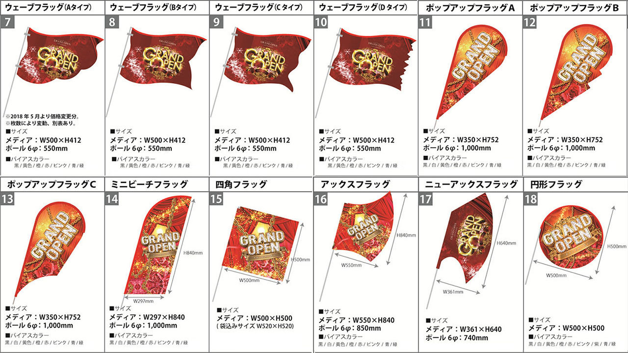 ウェーブフラッグ A・B・C・Dサイズ: W500×H412 mm ポール6φ 550mm カラーバイアス有